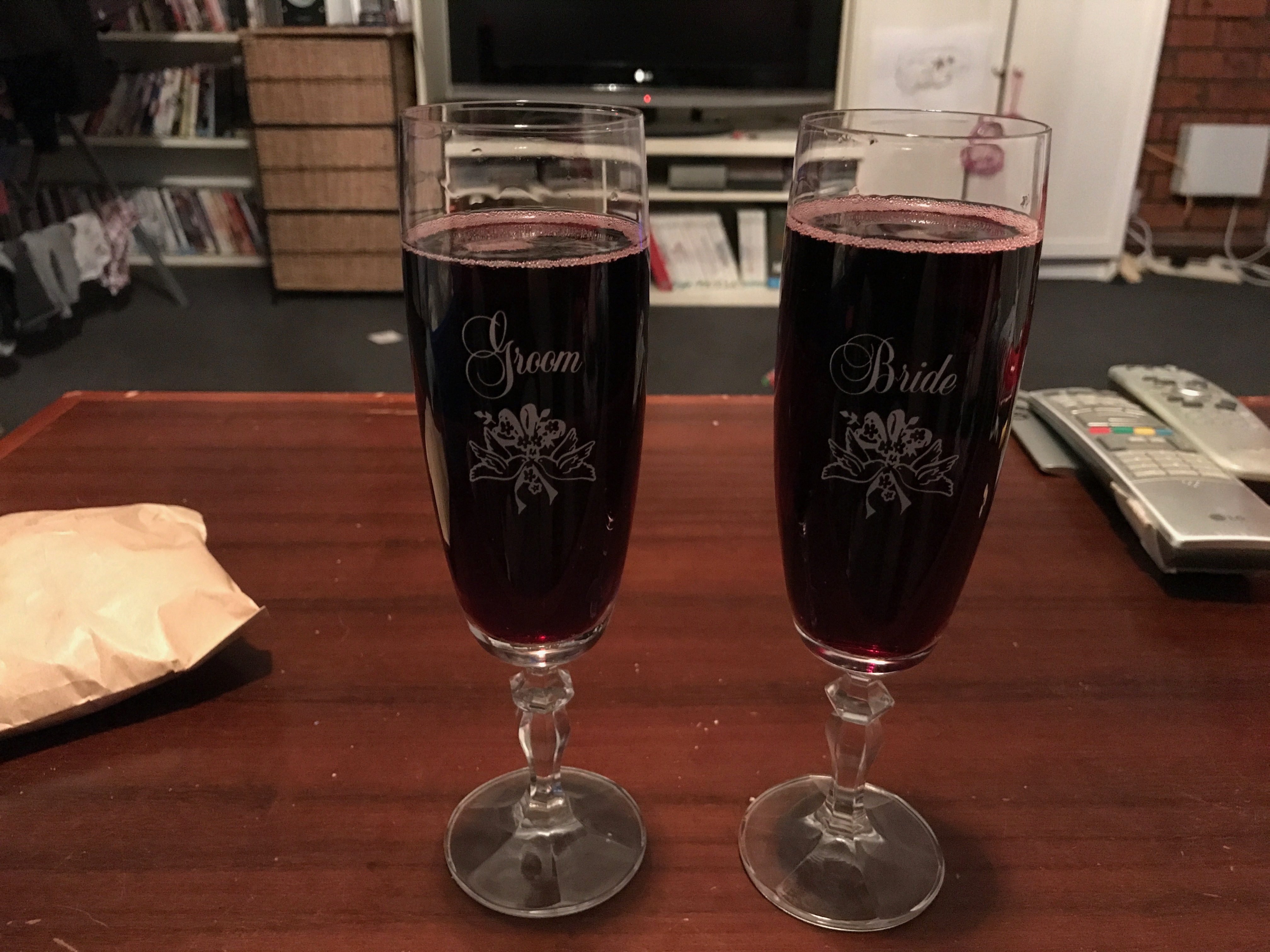 I got out some really old glasses (hahaha, that’ll get me in trouble) and celebrated Friday night with a bottle of Sparkling Shiraz.
