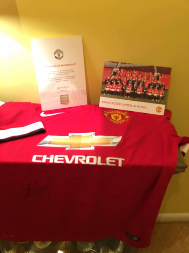 Now to the other side of the planet. England. Somehow the timing was perfect for one of the biggest hearted people you could ever hope to meet (and I do hope to meet, one day). This guy had just finished fundraising for a sick little girl over in the U.K. when he started looking for his next project. The “Eyelash” photo found him and so Lee Ellis reached out to me to ask how he could help. He did all he could to help raise awareness for what Hayley was going though including, plucking out his own eyelash on a live Facebook video. He then got his hands on a signed Manchester United guernsey and raffled it off, sending us all the money raised.