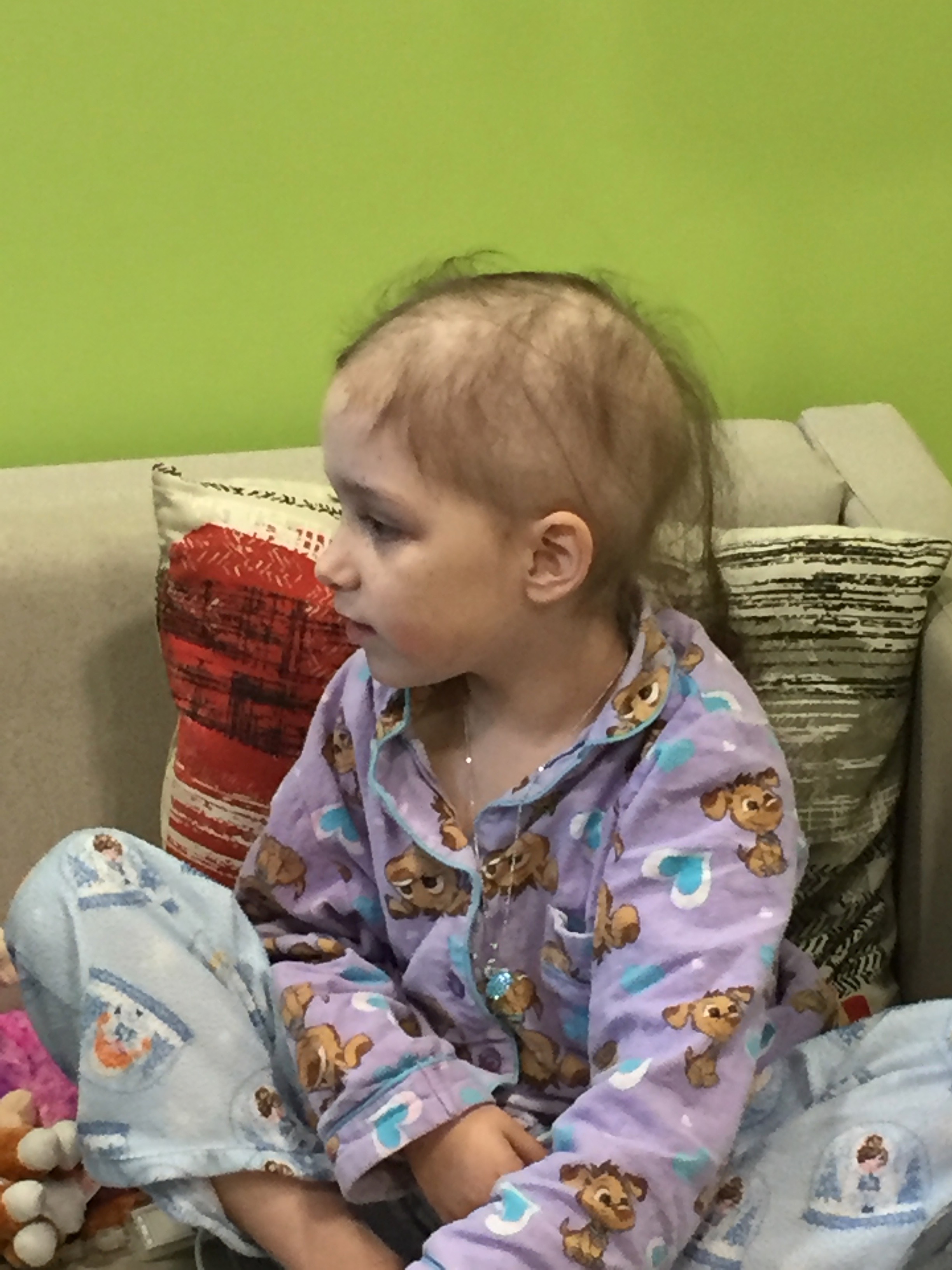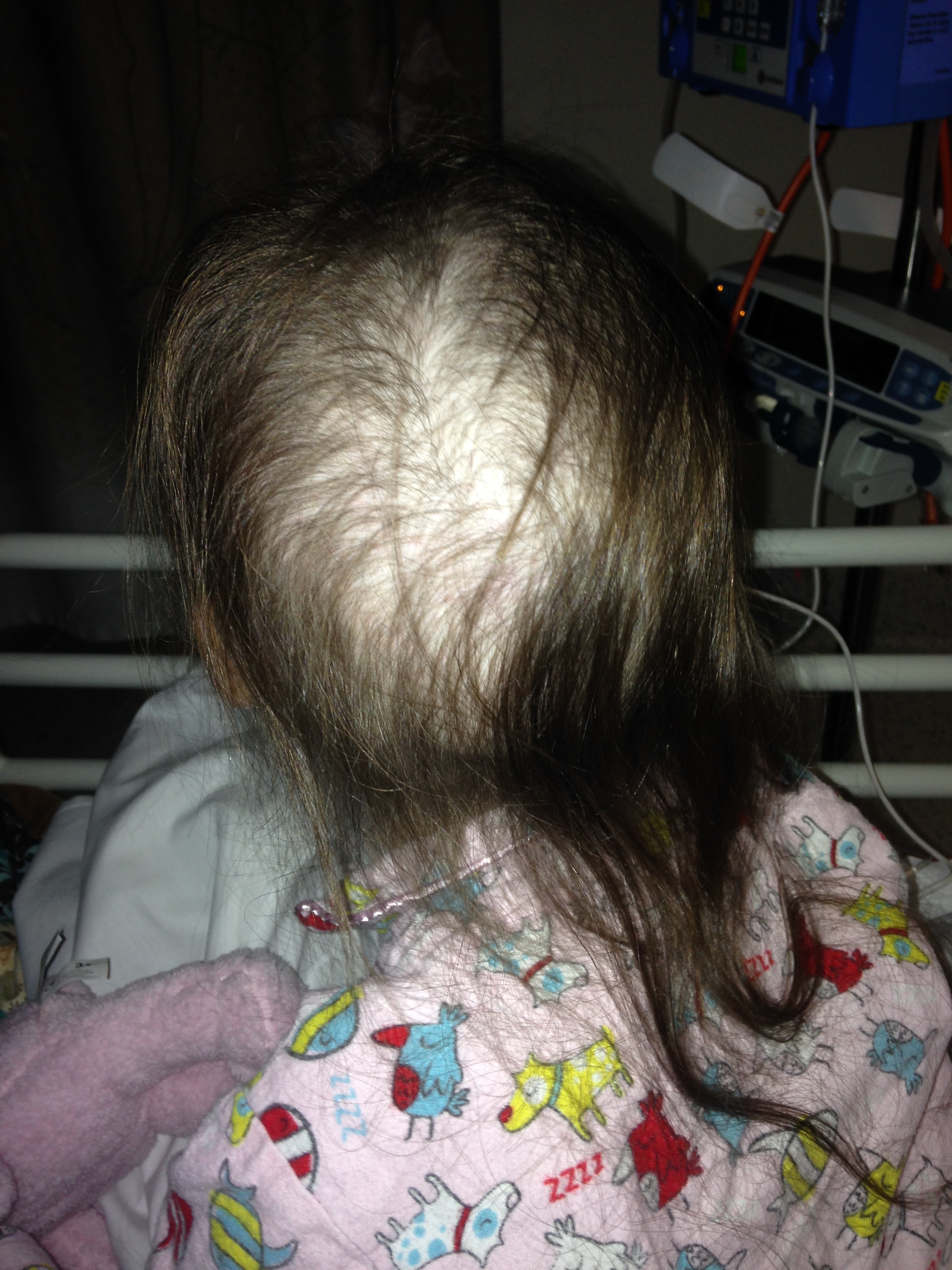 Lot’s of people have put that gold ribbon on their Facebook profile photo. Go Gold For Childhood Cancer. I posted a cute photo of Hayley with her bald head. There is so much more to it than losing hair. A hell of of a lot more. I even shared someone’s beautiful and cute video about a window cleaner entertaining a young, sick, bald kid in the hospital. Kid gets up out of bed, wanders over to the window and smiles. Next day has multiple bald kids all standing around and laughing. I love the film, it has a great message but it leaves some crucial points out. Generally, if there is a bald kid in hospital, they have been hooked up to so much stuff that they can’t just jump out of bed without wheeling the pole along with then with whatever stuff is currently being pumped into their body. Chemotherapy, anti nausea drugs, painkillers, feeding tubes, etc.