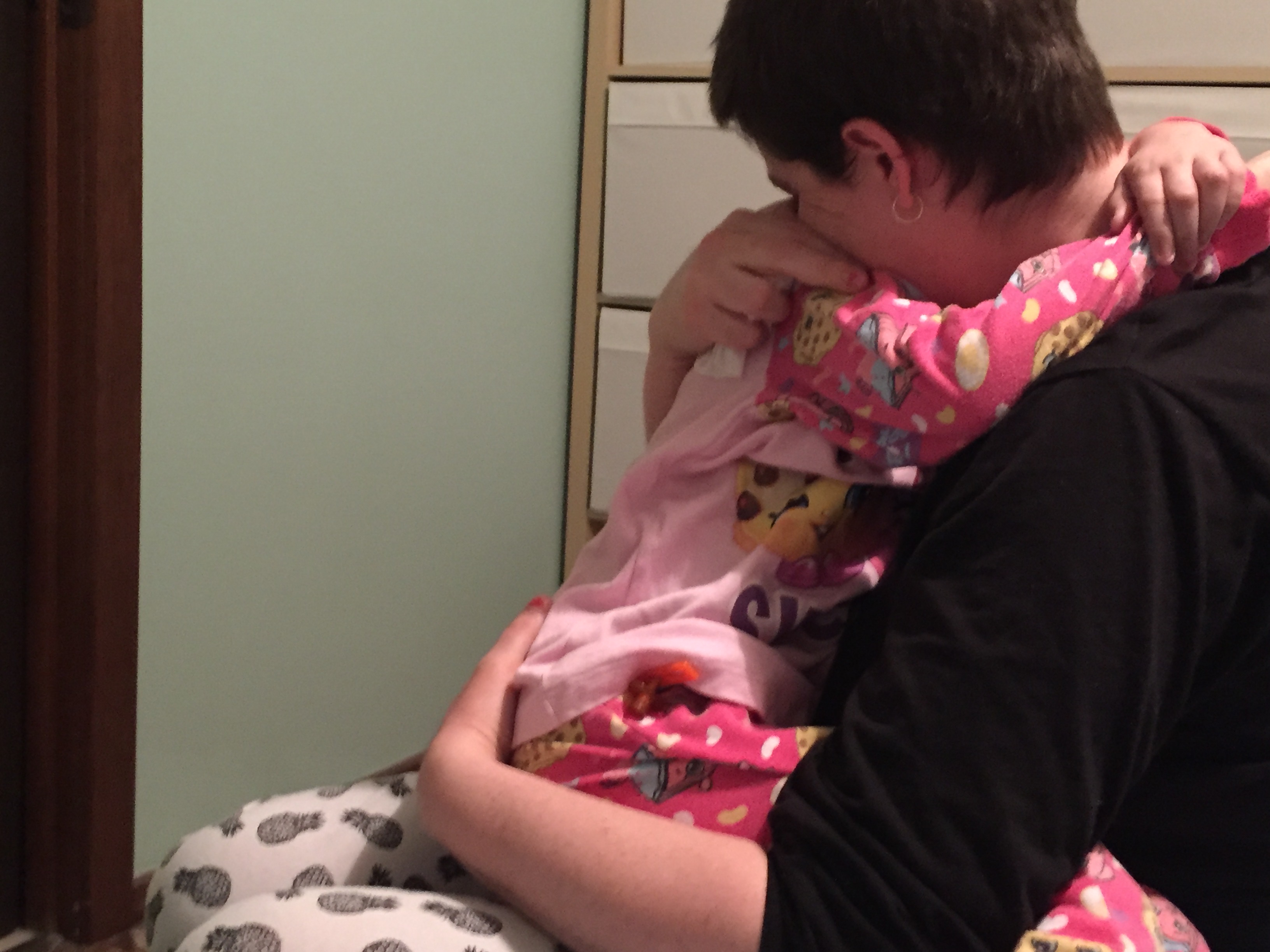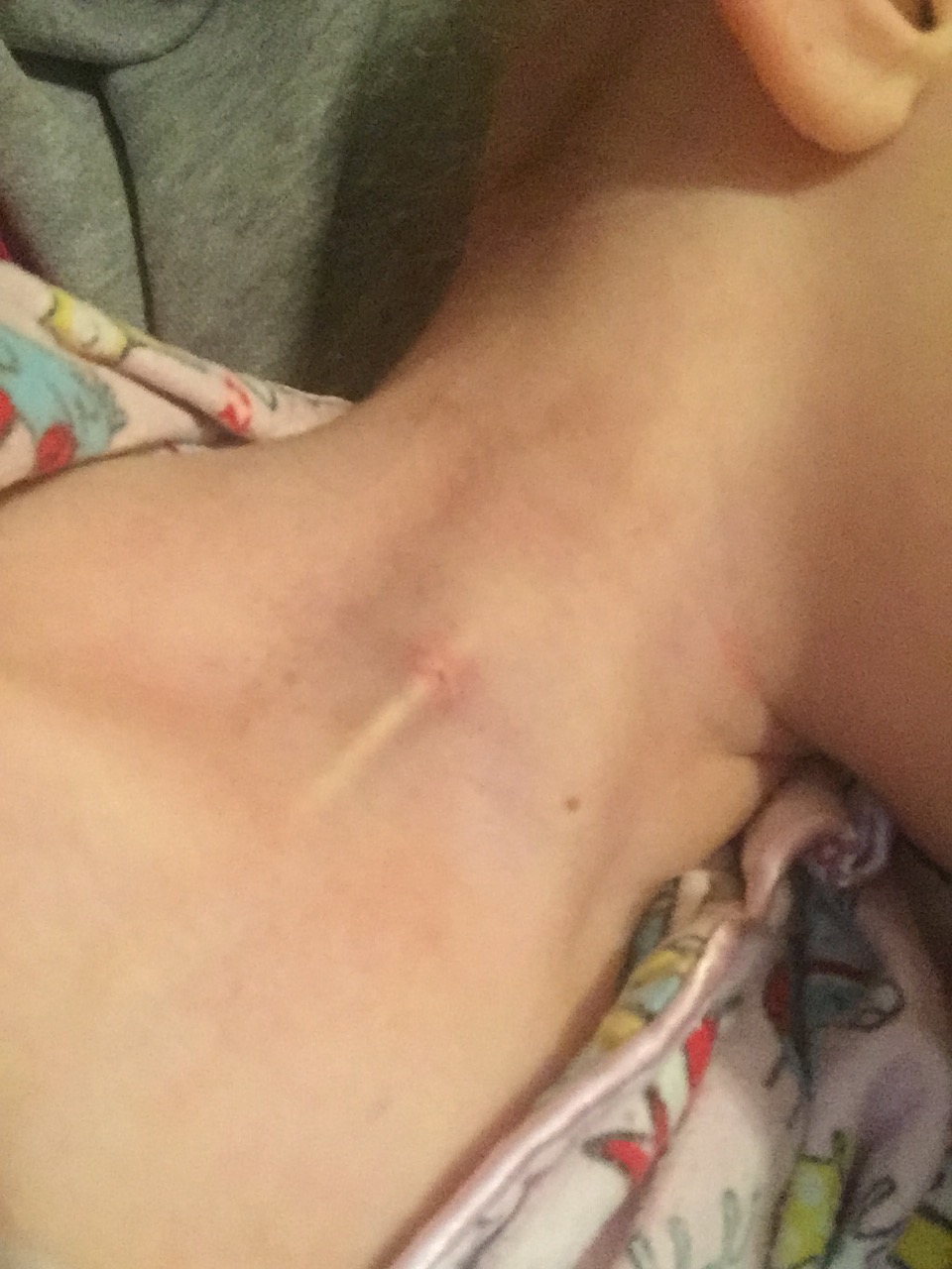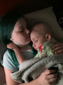 The worst things to be seen, I can not show you as you don’t reach for the camera when reaching for the spew bag. You don’t reach for the camera when someone is screaming in pain. Or rushing to the toilet, or changing dressings when you need one parent to hold her still while the other does the changing. But here are some real shots, not just the ones we share to show when things are having a nicer moment.