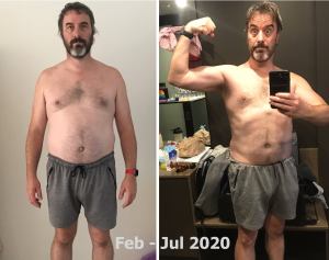 July 2020: Covid had another outbreak so quarantine rules kicked in. My wife flew home to be with the kids and couldn’t go to the service. We sprinkled my little brothers ashes, went to his favourite pub and had a few beers. A few hours later everyone went home. I sat outside the pub for a couple of hours so that it was safe to drive. I wasn’t drunk but playing it safe. I found a motel and spent a lonely night in my hometown. The next day I got on a plane to head home. Everyone on the flight was met at the Brisbane Airport by the army and police and escorted to a motel where we would spend the next 2 weeks. Stuck inside with my yoga mat and DDPY Now app and a view of the airport. Everyday I walked/ran further and was doing some advanced workouts including some of the Jacked ones. By the end I think I put on some muscle because I gained weight but even less weight. 87.5kg/192.2 pounds 92.5cm/36.4 inches waist.