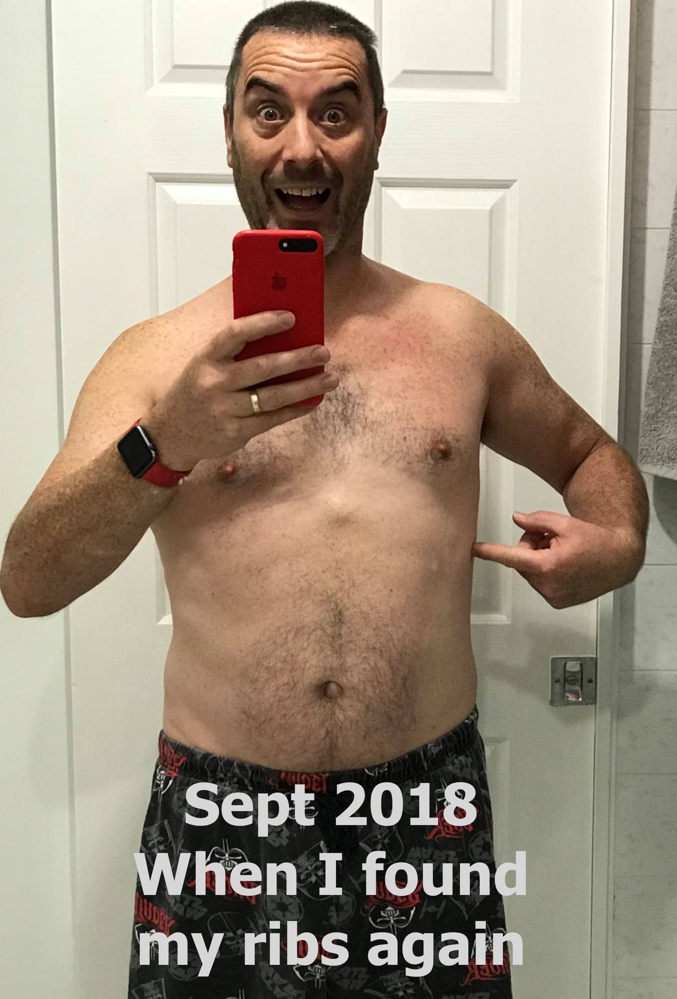 July 2018: Almost back up to my heaviest again. Started DDPY. Completed Beginner 2.0 and did about 2-3 more weeks and then stopped. I got down to 85kg/187 pounds and an 89cm/35 inch waist.