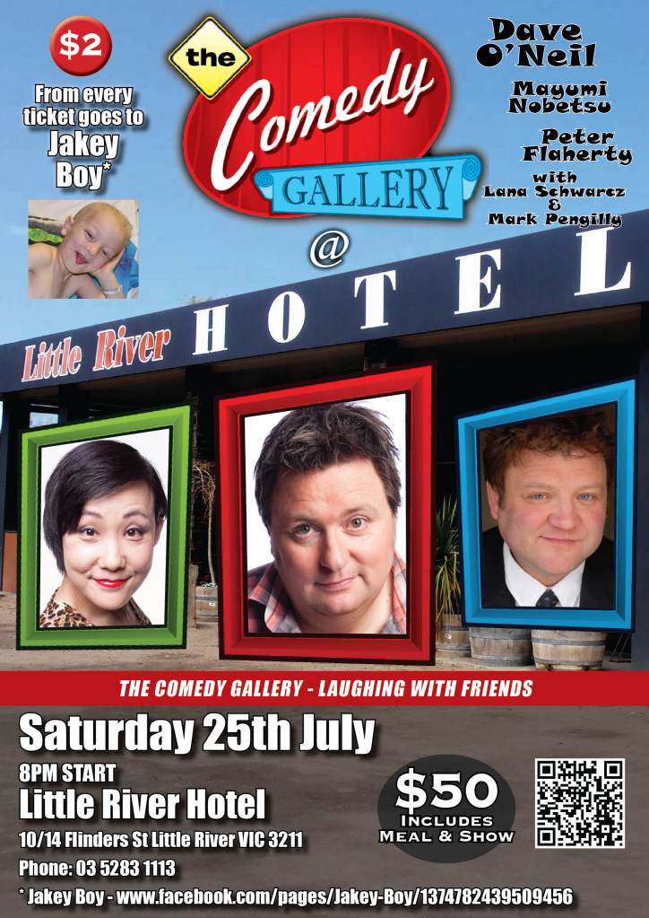 While that was going, we also opened a weekly tryout room at Customs Hotel in Williamstown. They have a beautiful room there but we were in the front bar anyway. We had 3 brackets in the night. The tryout bit for new comedians and/or experienced to come and tryout some stuff, we had a headliner and a spot for anyone and everyone to jump on up and tell a joke. We didn’t miss a week for a long time and even when they cancelled our night, they asked us back for one more.